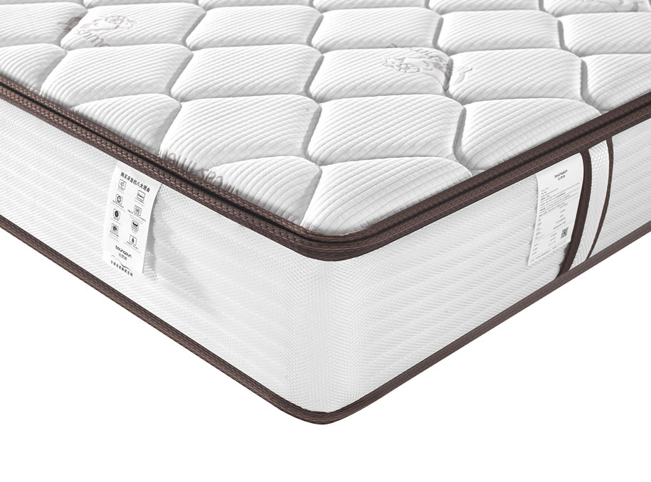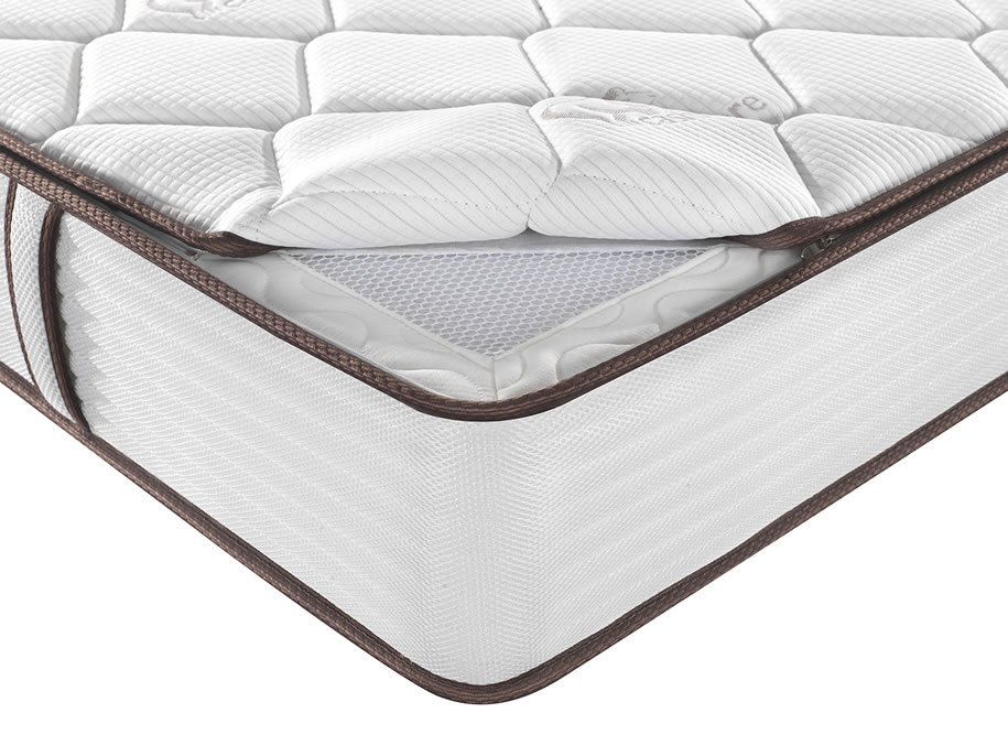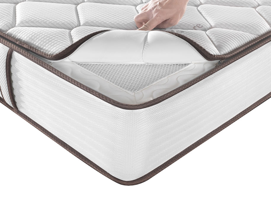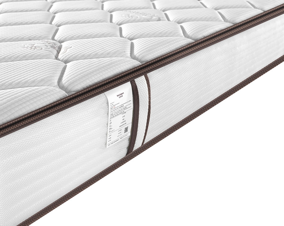 4、支撑层选用原生态3E环保棕,3E环保棕采用生长在高寒地带的天然山棕树的棕丝与热溶棉结合形成棕块,不含胶水、绝对环保,是喜欢睡硬床垫的人群更佳选择。